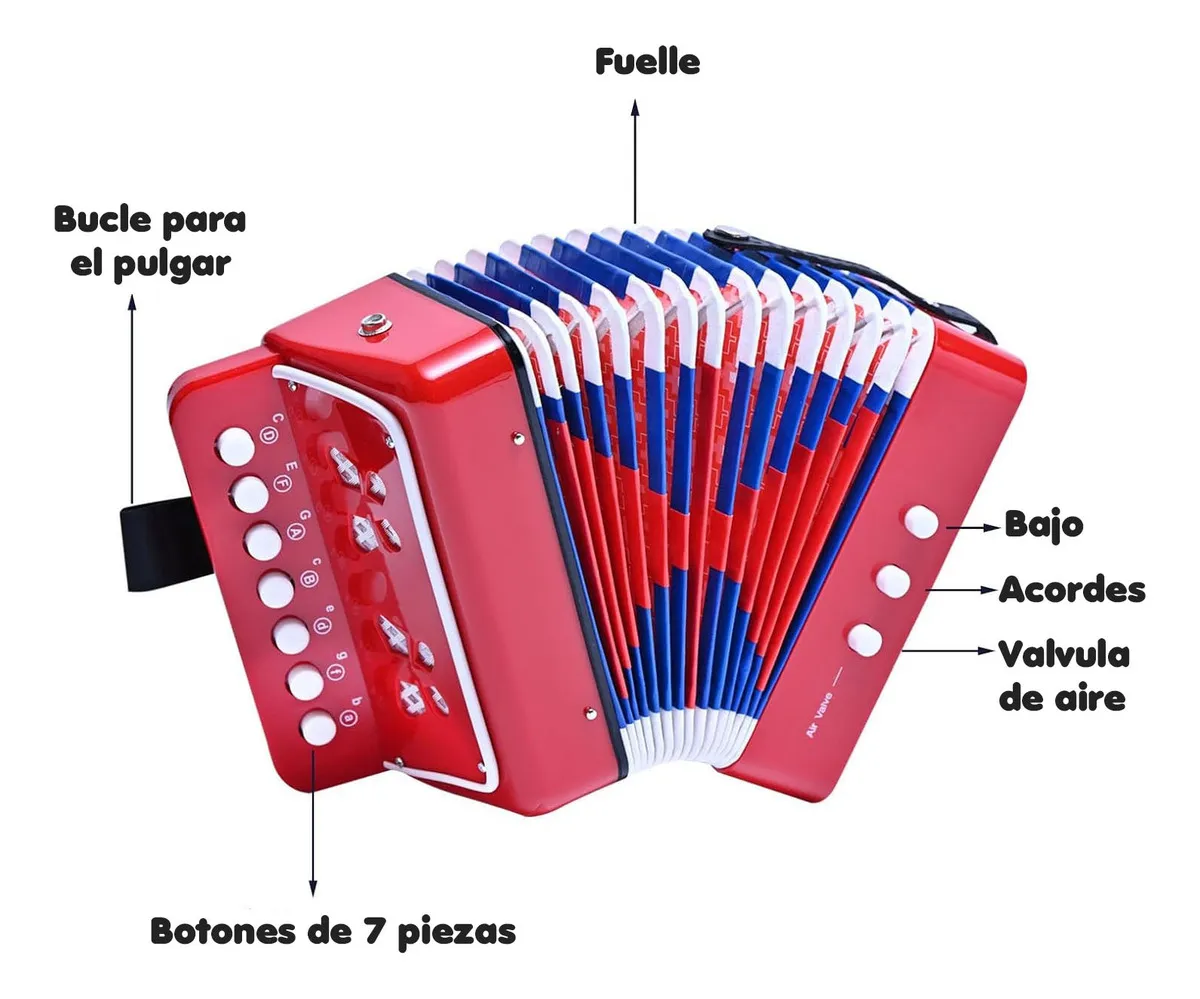 Acordeón De Niños 7 Teclas Rojo Brillante