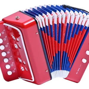 Descubre el Mini Acordeón Para Niños, diseñado especialmente para pequeños músicos a partir de los 5 años. Este encantador acordeón cuenta con un acabado brillante que atraerá la atención de los niños, fomentando su interés por la música. Con 2 botones de bajos y 7 teclas, los niños podrán explorar una variedad de sonidos y desarrollar su creatividad musical. Su diseño compacto, con dimensiones de 18x10x17 cm y un peso de solo 700 gramos, lo hace perfecto para que los más pequeños lo manipulen con facilidad. Aunque no incluye estuche, su robustez garantiza que resistirá el uso diario. Este acordeón es un regalo ideal para estimular la imaginación y el amor por la música en los niños, convirtiéndose en el compañero perfecto para sus primeras melodías. ¡Deja que la música comience con el Mini Acordeón