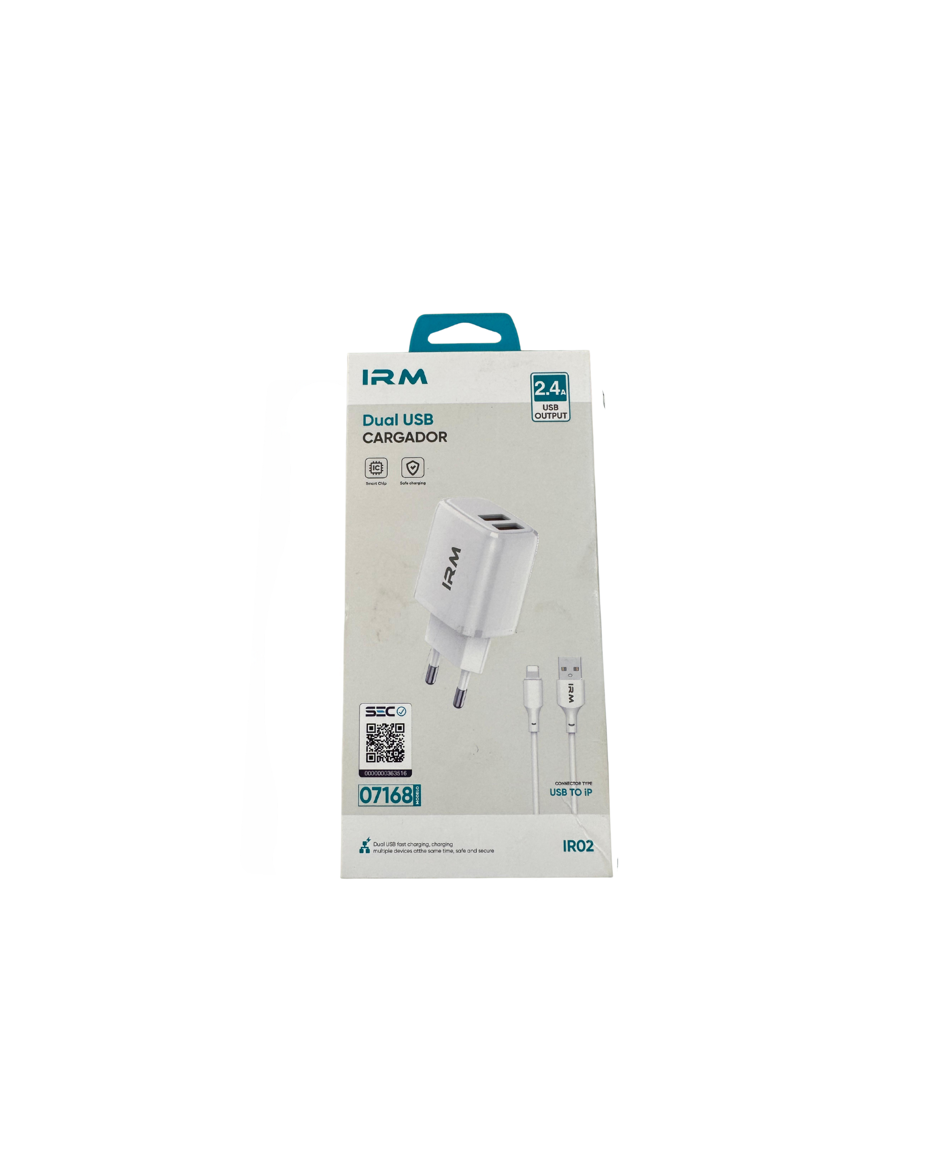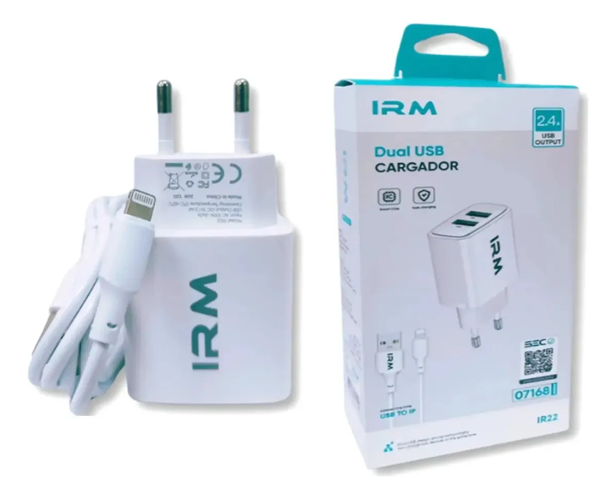Cargador certificado carga rápida doble salida USB 2.4 A DOBLE USB + Cable Lightning