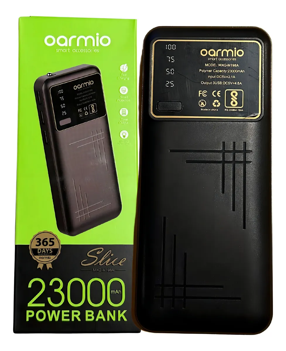 Cargador Portátil Oarmio Power Bank 23000mAh Ideal Viajes Oarmio 23000 mAh: tu compañero de viaje y fuente confiable de energía para un amplio espectro de dispositivos. Amplia Compatibilidad: Este banco de energía está listo para cargar desde teléfonos inteligentes hasta tablets, cámaras, parlantes portátiles, navegadores GPS, ecosondas, libros electrónicos, cámaras fotográficas y de video, luces LED y otros equipos móviles. Carga Eficiente: Equipado con tres puertos USB, permite cargar hasta tres teléfonos inteligentes o tabletas simultáneamente. Cada puerto ofrece una corriente de salida de 1.5 amperios, asegurando una carga rápida y eficiente. La recarga se realiza mediante un puerto microUSB, ubicado en la parte frontal de la carcasa. Conéctalo a una red de 220 voltios y una fuente de alimentación de 2 amperios para una carga completa en un tiempo de hasta 25 horas. Amplia Capacidad: Con 23000 mAh, este banco de energía brinda una fuente confiable de energía durante largos viajes y aventuras. Diseño Duradero: La carcasa de plástico ABS garantiza durabilidad y resistencia, mientras que su diseño compacto y portátil lo convierte en el compañero ideal para llevar contigo. Oarmio 23000 mAh es una fuente de poder versátil y confiable que se adapta a tu estilo de vida activo. Mantén tus dispositivos cargados en cualquier momento y lugar.