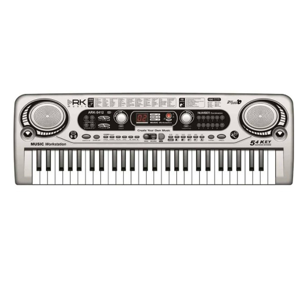 Teclado electrónico de 54 teclas, diseñado para principiantes o niños. Estos teclados suelen ser compactos, económicos e incluyen características como pantalla led, conexión para micrófono y funcionan con adaptador de corriente o pilas.